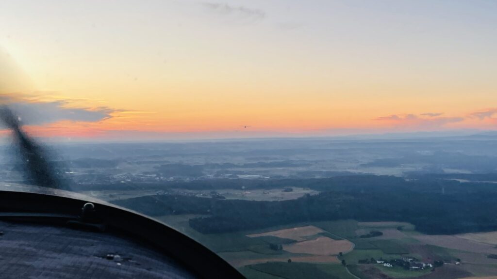 Am 13.August 2022 flogen wir gleich morgens von Saulgau los, wunderschön in den Sonnenaufgang hinein.