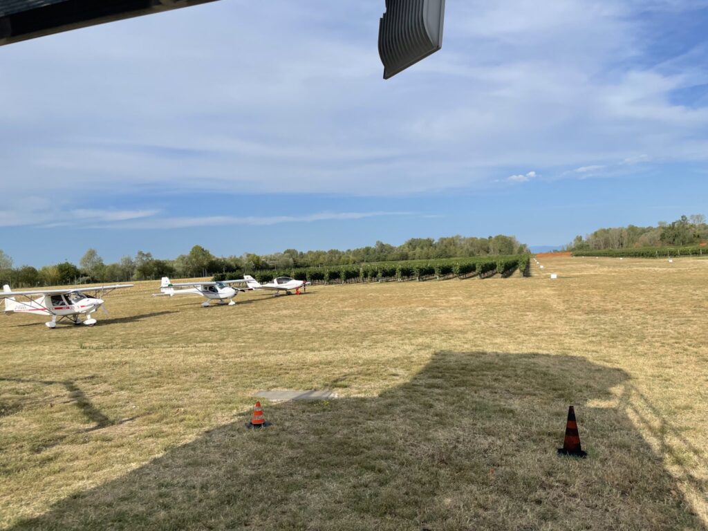 Dann nach einem eindrucksvollem Flug am ausgetrocknetem Flussbett des Tagliamento entlang die reizvolle Landung zwischen Weinreben auf der Piste von Al Casale.