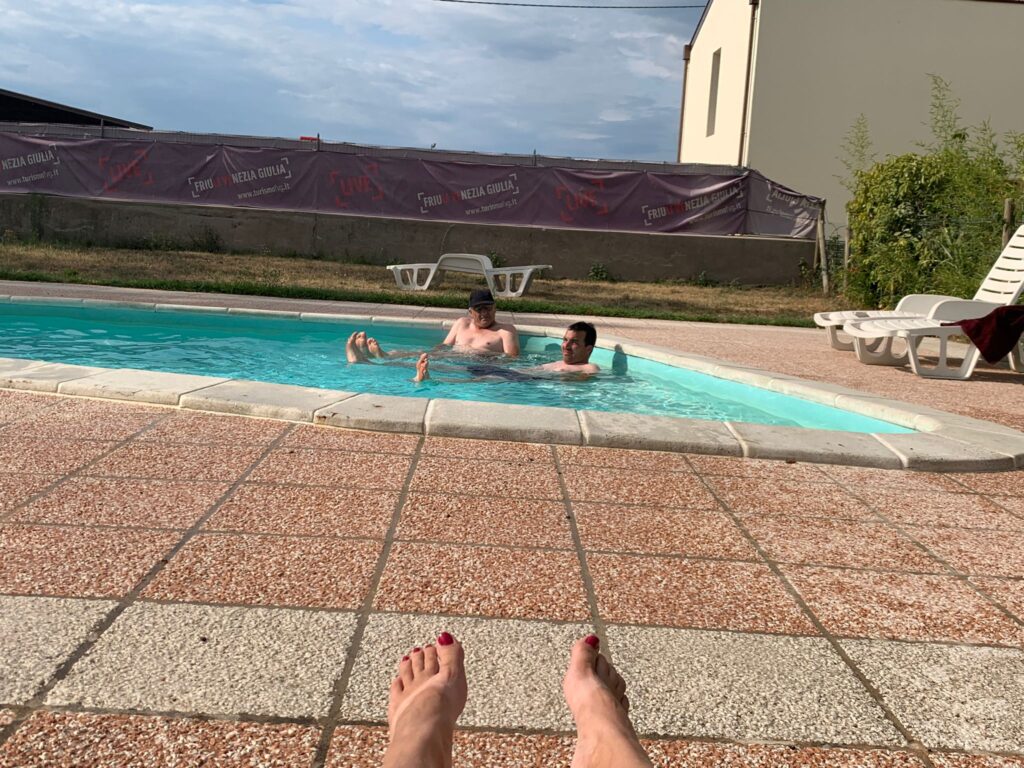 Ein Teil der Gruppe ging es danach locker an und verbrachte den Tag mit Getränken und Pool, der andere Teil flog erst einmal am Meer entlang nach Caorle.