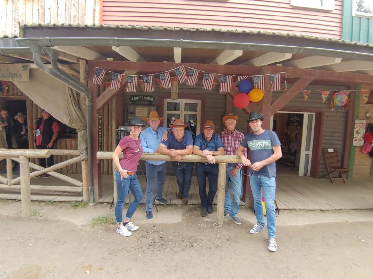 Unsere Kaddi und der Stefan, jung, dynamisch, immer mit Vollgas, hatten einen Aus“Flug“ nach Pullman-City geplant. Mit der OL, dem Rattel und der MLWE, besetzt mit der erwähnten Vorstandschaft, Edgar, Karl-Josef, Wicky und mir sollte es möglichst früh am 17. Juli losgehen. Wie bei den Saulgauer Fliegern allerdings nicht unüblich, war uns der Wettergott nicht ganz freundlich gesonnen und so: Aushallen, Piss, Einhallen, gespannte Luftraumbeobachtung, schließlich tat sich mit der Zeit dann doch ein bläuliches Löchlein am Himmel auf, so dass wir gegen Mittag schließlich Richtung Ost-Nordost abzischen konnten.